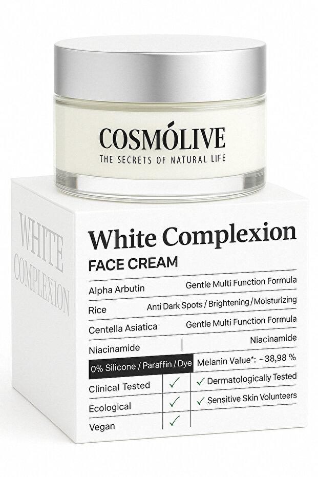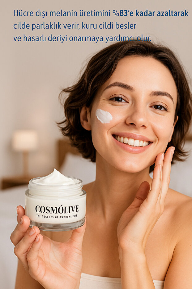 Cosmolive koyu leke karşıtı cilt kremi doğal bileşenlerle formülüze edilmiştir.